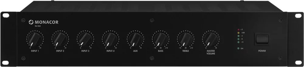 PA monó keverőerősítő 1 x 120Weff 4 szimmetrikus mikrofon/vonalbemenet MIC 1 mikrofon prioritás-áramkörrel és automatikus talkover funckióval Kiegészítő csatlakozás asztali mikrofonhoz csavaros kábelszorítóval 1 AUX bemenet Hangszórókimenetek csavaros kábelszorítókkal Vonalkimenet Insert lehetőség előerősítő számára Bemeneti és kimeneti szintszabályzók 2-sávos hangszínszabályzó a kimeneten 21V fantomtáp, kapcsolható Hálózatról vagy 24V-os szükség-tápról működtethető |
